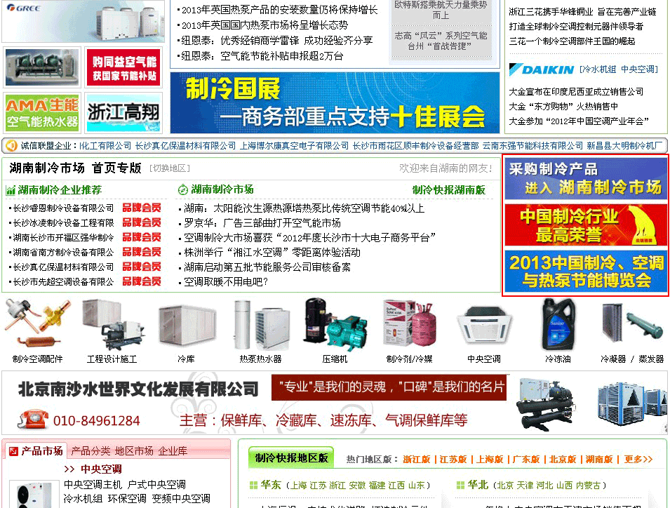 廣告位名稱:地區制冷市場 首頁專版